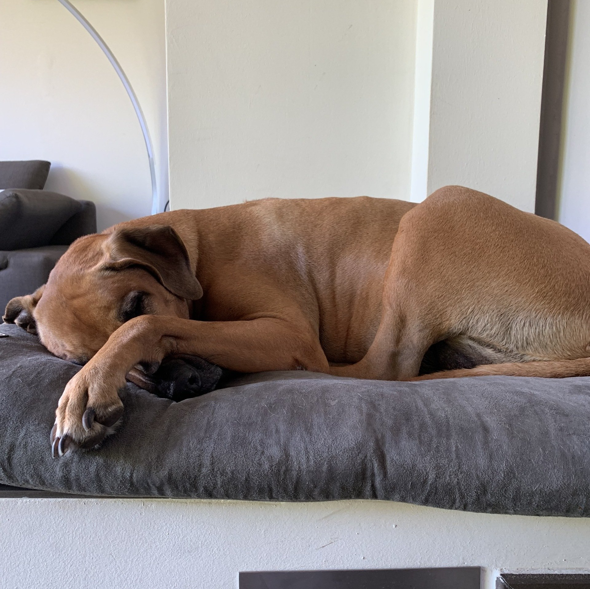 Kimba ist ein Rhodesian Ridgeback und als wissenschaftliche Mitarbeiterin in Altersteilzeit hin und wieder im Büro anzutreffen.